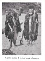 Ragazzi carichi di reti da pesca a Sumatra. Stampa 1934