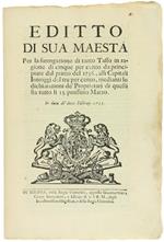 EDITTO DI SUA MAESTA' per la surrogazione di tanto Tasso in ragione di cinque per cento... alli Capitali Introggj del tre per cento... In data de' dieci Febbrajo 1735 [documento originale] - Carlo Emanuele III