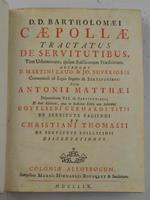 Tractatus de servitutibus, tam urbanorum, quam rusticorum praediorum. Accedunt D. Martini Laud. Et Jo. Superioris commentaris ad leges singulas de servitutibus. Item Antonii Matthaei disputationes VII de servitutibus, et huic editioni, quae in hacten