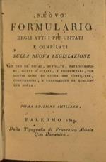 Nuovo formulario degli atti piu usitati e compilati sulla nuova legislazione ad uso dè notaj avvocati patrocinatori genti d'affari e propretarj per servir loro di guida nei contratti. contenzioni e transazioni di qualunque cosa