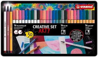 - Set creativo ARTY con 10 Fineliner STABILO point 88, 10 Pennarelli Premium STABILO Pen 68 e 10 pennarelli con punta a pennello STABILO Pen 68 brush